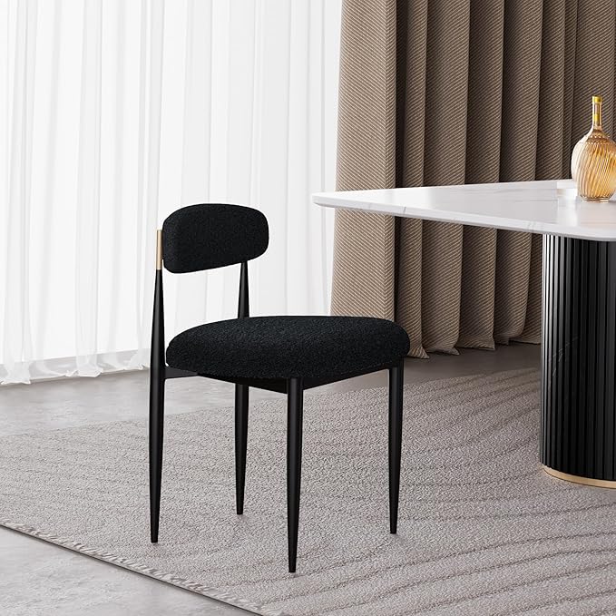 Morden Fort Black Dining Chairs Set of 4, Boucle Upholstered Chairs with Curved Backrest and Metal Frame for Dining Room, Kitchen, Apartment
