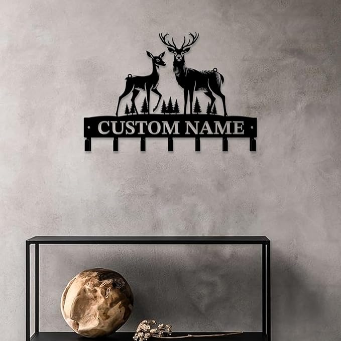 - Durable Forest Deer Wall Hooks Metal Signs Made with premium metal iron, these hooks are sturdy, long-lasting, and perfect for organizing keys, hats, towels, or coats in your home or office.
