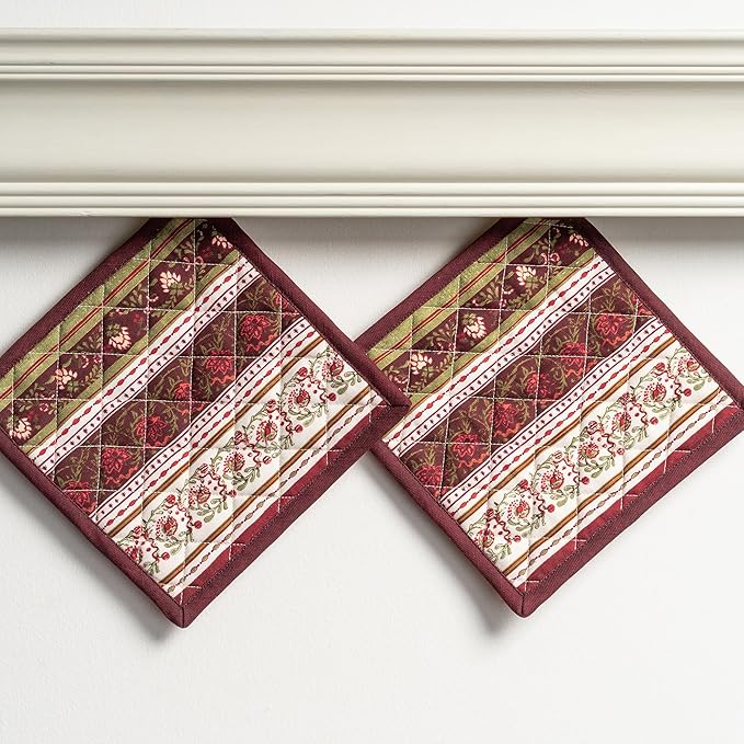- Package Includes: Set includes 2 pot holders measuring 8" x 8", perfect for handling hot pots, pans, and dishes safely. Made from 100% cotton for reliable heat protection and durability. Designed in Europe and made in India