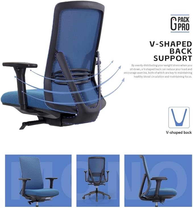 Executive Office Chair – Mesh Office Chair with V-Shaped Back, Adjustable 3D Arms & Sliding Soft Seat Cushion – Holds Up to 270lbs (Blue)