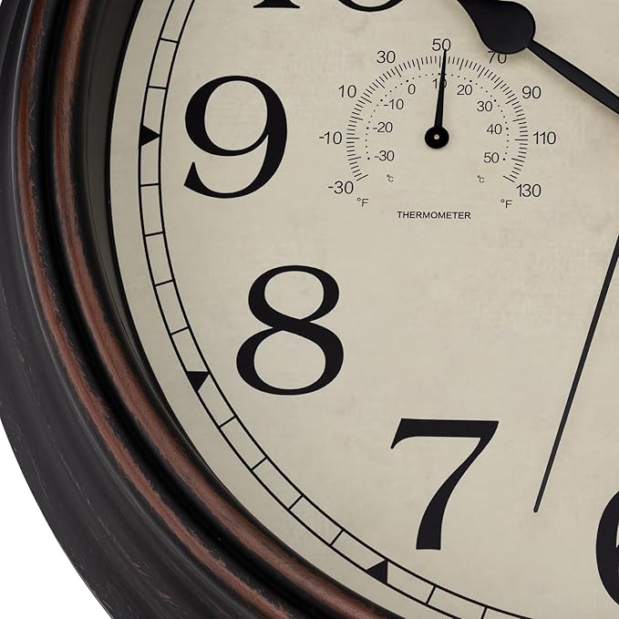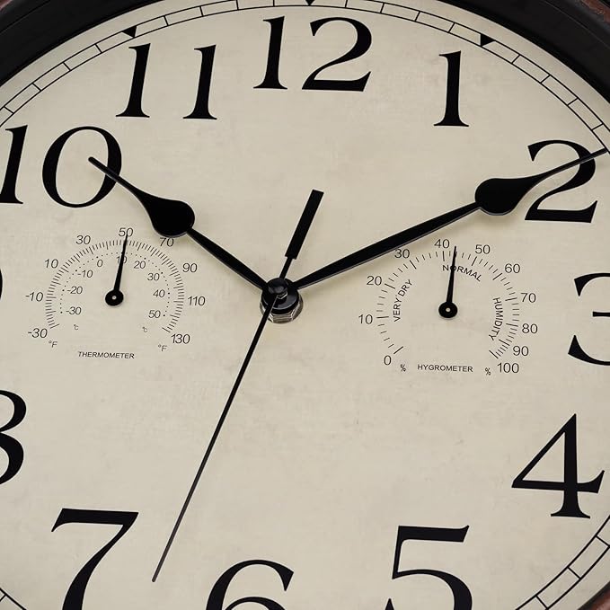 - Elegant Design: Waterproof rear cover & Front rubber seal, perfect clock for hanging outside, bathroom, laundry room, dining rooms, living rooms, family rooms, bedrooms, study room, kitchen, office, lounge or conference room.