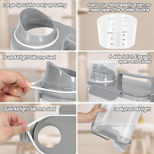 - WHAT YOU GET ? :The small dog food bin comes with a 1-pack airtight pet food storage container with a clear measuring cup and an upgraded large spout for easy pouring of pet food at any time. This dog food storage containers can be a gift The perfect gift for any home.