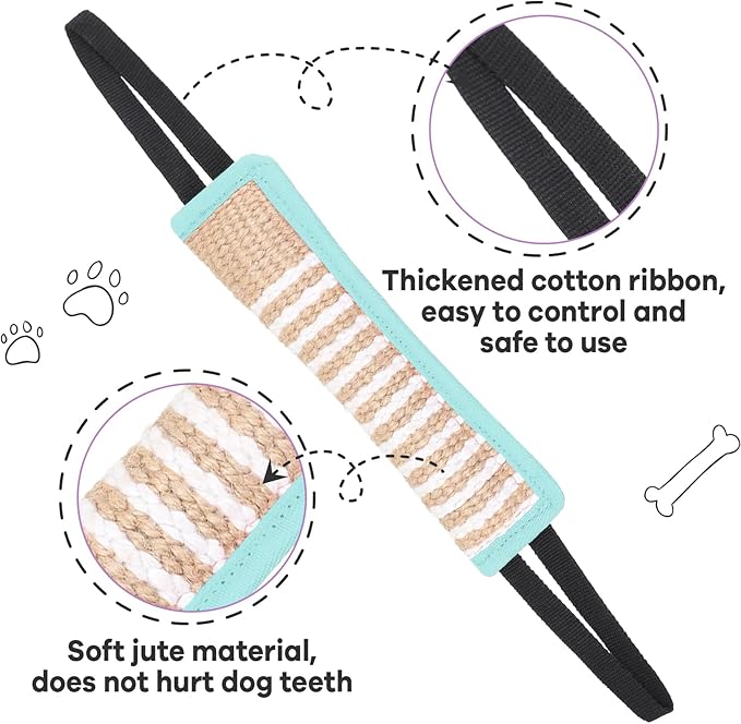 - Suitable Size: each jute toy is about 11.81 x 3.15 inches and has 2 sturdy handles, providing you with additional options for hand placement and a safe and comfortable grip; The handle adopts thickened textile strap material, strong and safe to use, prevents your hands from being burned or cut by the rope