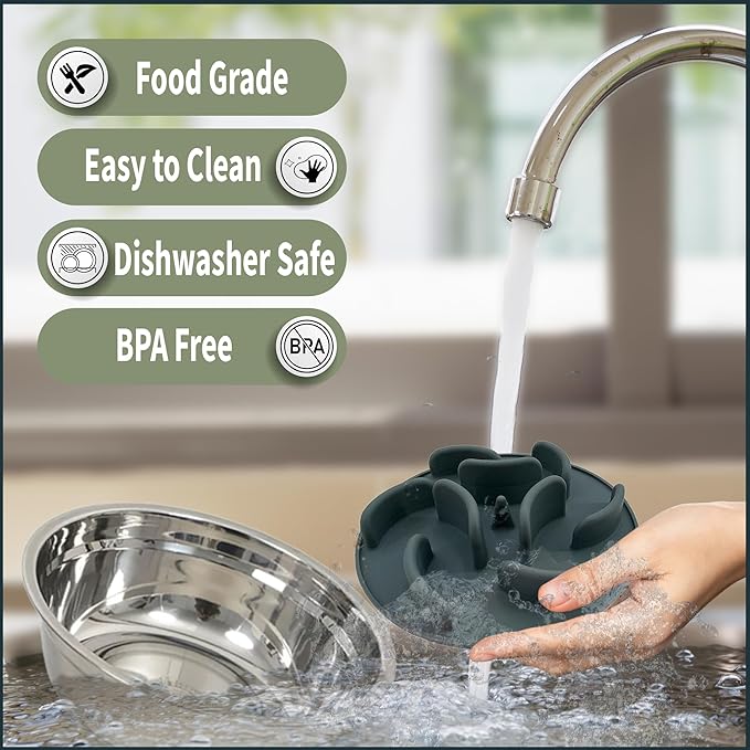- Removable Slow Feeder Insert Pad - Use the silicone slow feeder insert to encourage slower eating and better digestion, or opt for the plain stainless steel bowl for a standard feeding experience. The feeder bowl can also be used with or without the bamboo stand, adapting to your pet’s preference and comfort.