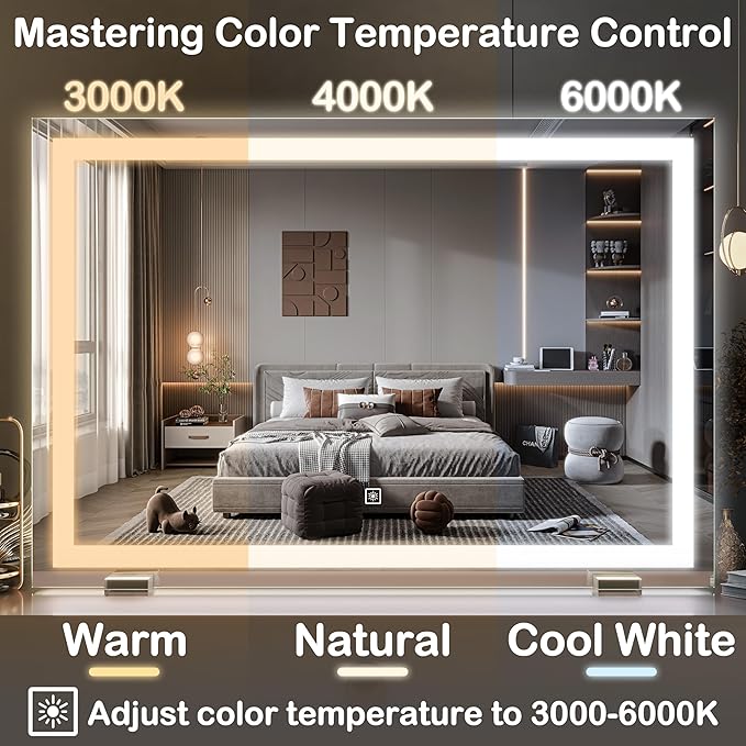 - 👍【Unique Side Lighting Design, Upgraded Atmosphere】Compared to ordinary mirrors, our vanity mirror ingeniously adds a side lighting function. The front and side lights complement each other, not only providing you with more even and shadow-free lighting but also creating a warm and bright overall vanity atmosphere, making you feel as if you were in a professional makeup room and fully enjoy the fun and beauty of makeup.