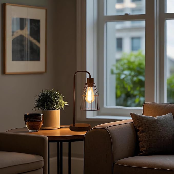 - Vintage table lamp design: black bedroom nightstand table lamp with vintage cage lampshade and clean lines bracket, its classic and fashionable style can instantly attract attention, it not only provides simple lighting for your home, but also provides you with warm and cozy atmosphere