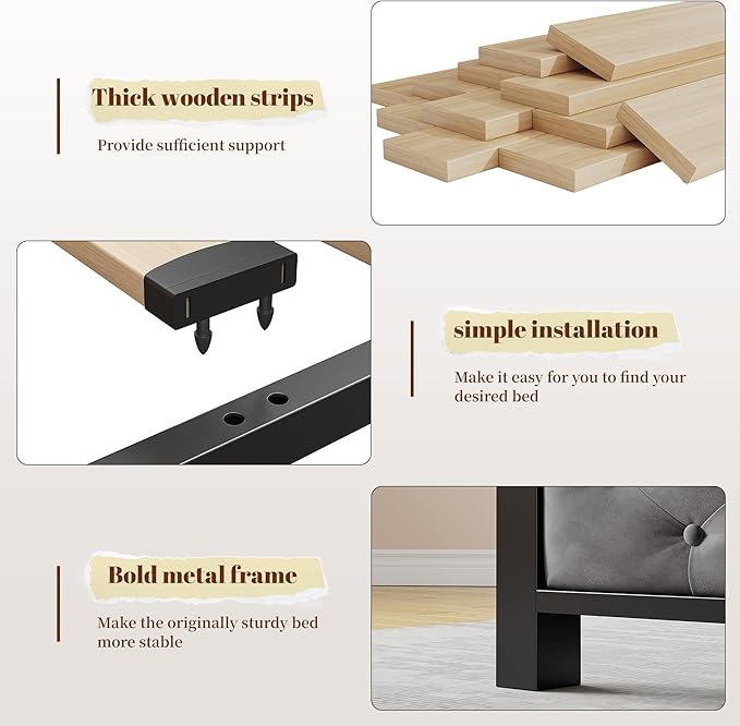 - 【Easy Assembly and Reliable Support】: Clear step-by-step instructions and labeled parts simplify setup. If any components are missing or damaged, contact customer service for prompt solutions. Enjoy a hassle-free experience with a bed frame queen designed for both functionality and lasting quality.