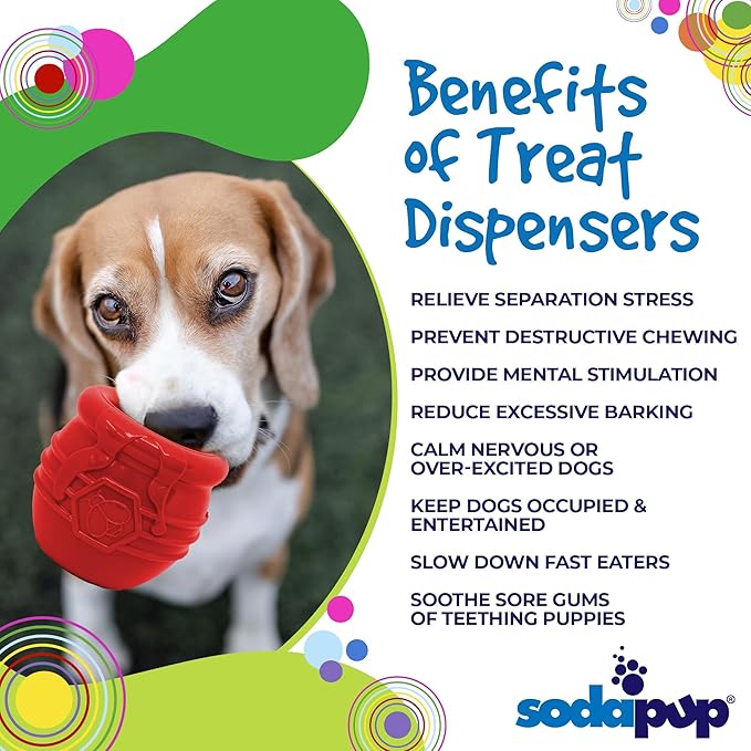 SodaPup Honey Pot – Durable Dog Treat Dispenser & Enrichment Toy Made in USA from Non-Toxic, Pet Safe, Food Safe Natural Rubber Material for Mental Stimulation, Problem Chewing, Calming Nerves, & More