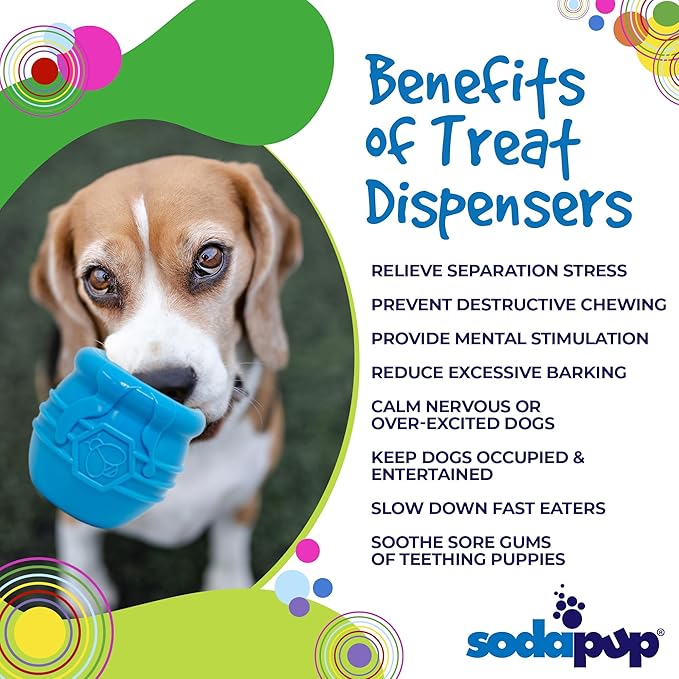 • BENEFITS OF TREAT DISPENSERS – Relieve separation stress, reduce problem chewing, provide mental stimulation, reduce excessive barking, calm nervous & over-excited dogs, keeps dogs occupied, slow down fast eaters, and soothe gums of teething puppies.