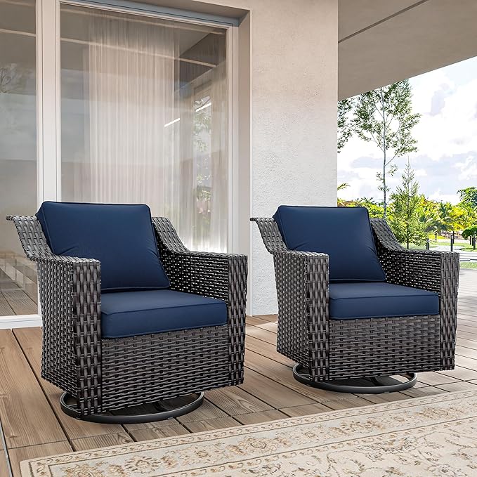 - 360° Swivel & Glide: The patio swivel chair is designed with a stable and secure rotating glide base, allowing you to change your angle without moving the entire chair. A gentle push sets the chair rocking like a cradle, offering ultimate relaxation as you enjoy the outdoor life