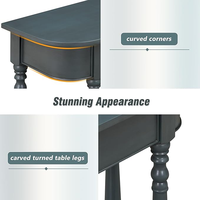 - Exquisite Design: Elegant half-moon shape,rounded design on both ends,4 Roman legs and sleek round knob on the full-width drawer make this curved console table full of Roman features.Place this exquisite and beautiful console table in your home,it will become a bright landscape,adding a vintage and elegant atmosphere to your home.