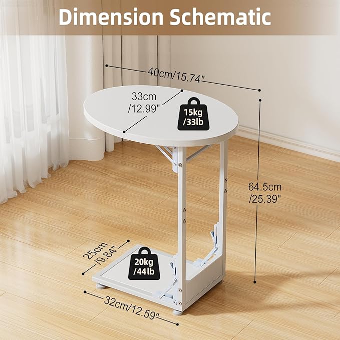 Elbourn Folding Side Table End Couch Tables,Metal Frame C-Shaped TV Stand for Living Room, Bedroom, Coffee Table(White)