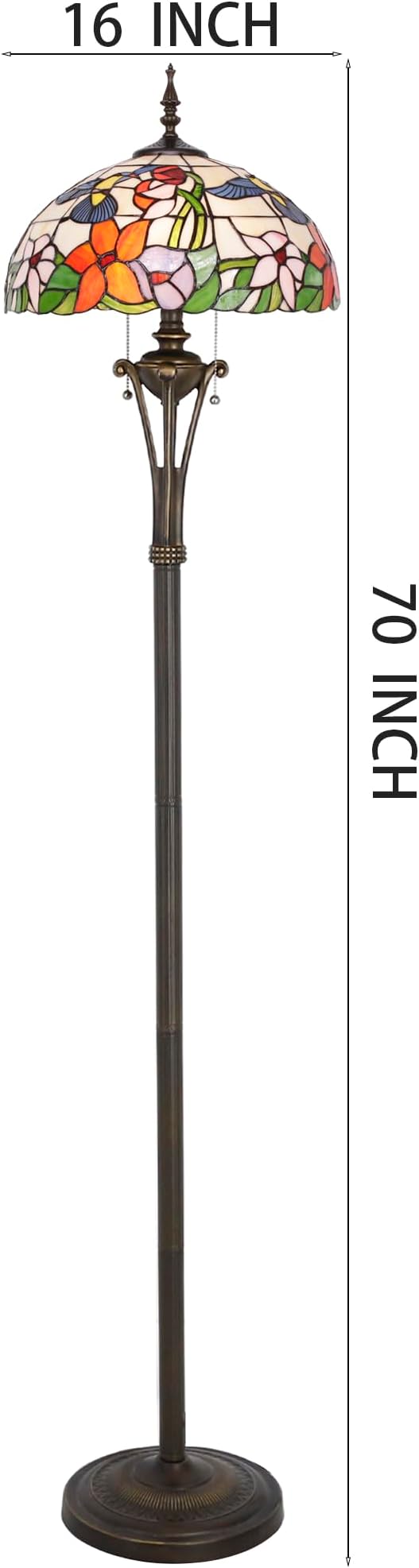 Tiffany Floor Lamp Amber Hummingbird Stained Glass Standing Reading Light 16X16X70 Inches Antique Pole Corner Lamp Decor Bedroom Office Living Room