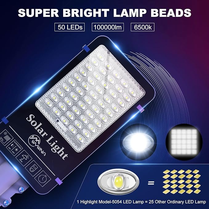 - [Super Big LED Beads]: Our outdoor solar lights Featuring 50 high-brightness 5054-SMD lamp beads, our newly upgraded solar lights outdoor waterproof are as bright as 26 ordinary lamp beads each, providing reliable all-night illumination