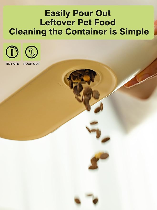 - Easy to Open and Clean: Featuring a one-touch pop-up lid, our cat treat container is designed for convenience. The bottom knob allows you to easily pour out any remaining dry food, minimizing waste. Cleaning the interior of this pet food storage container is also a breeze.