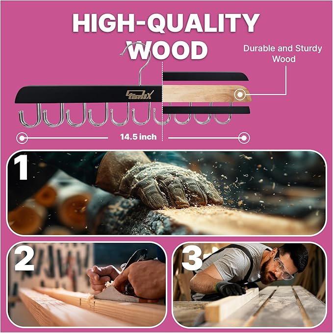 - MULTIFUNCTIONAL HANGER: This versatile wood hanger is perfect for tank top hangers space saving, bras, belts, ties, scarves and more. As a tie and belt organizer, it adds elegance and functionality, serving as a premium multi hook hanger for organizing your closet.