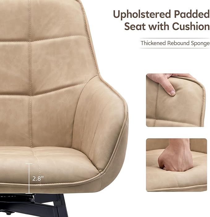 TUKAILAi Swivel Dining Chairs Set of 2, Faux Leather Upholstered Mid Century Accent Chairs with Metal Legs, Rotatable Kitchen Chair for Home Kitchen Restaurant (Cream)