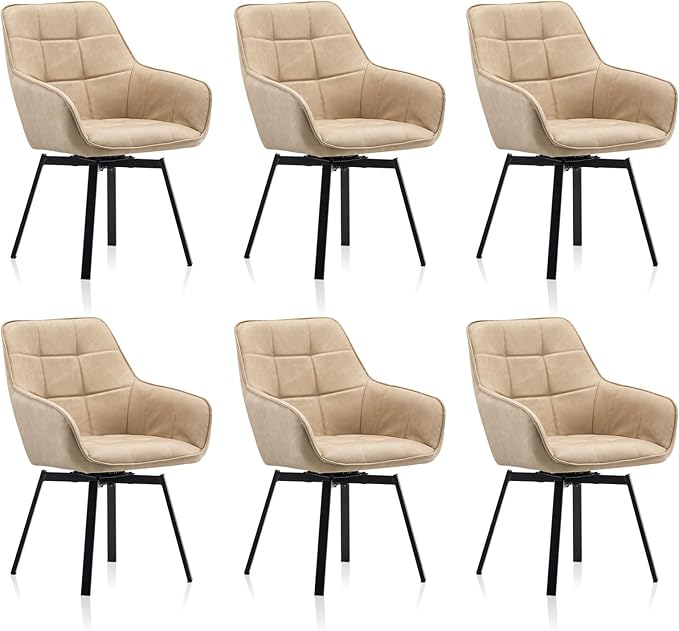 TUKAILAi Modern Swivel Armchairs Set of 6, Faux Leather Upholstered Accent Dining Chairs with Metal Legs, Rotatable Leisure Chair for Kitchen Guest Reception Restaurant Commercial (Cream)