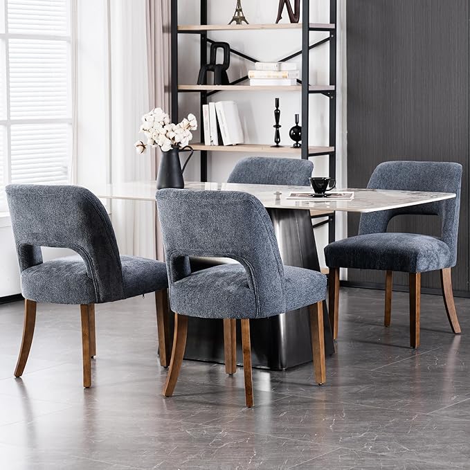 - Modern Wood Dining Chair: Our kitchen chairs are a perfect blend of fashion and function to enhance your dining experience. The backrest is curved and hollowed out with elegant wooden legs, adding a touch of sophistication and elegance to your dining area, and the chair's cozy sponge cushions will ensure that you sit comfortably while you dine