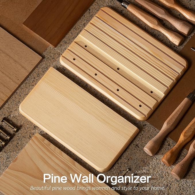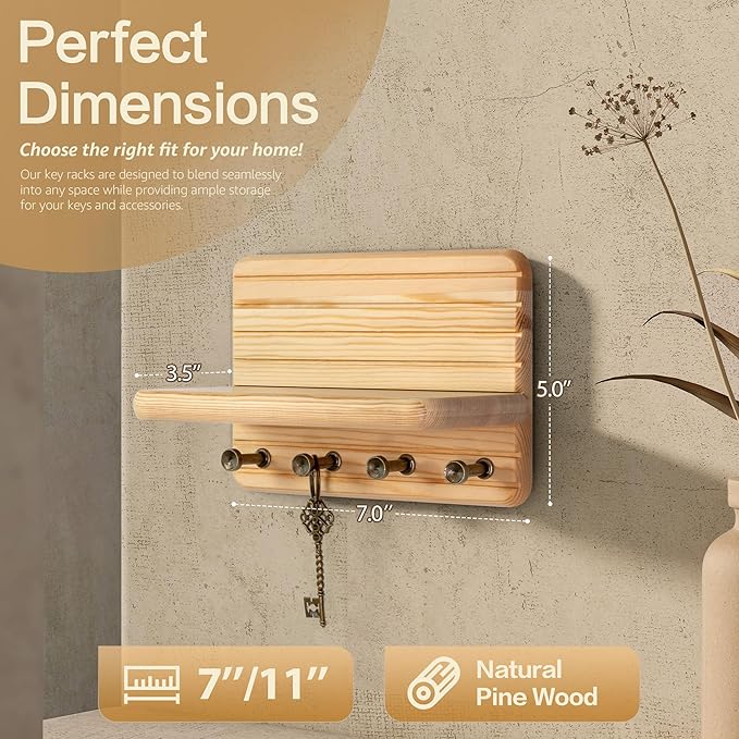 - [PREMIUM WOOD] Crafted from sturdy pine wood, this key rack combines sturdiness with rustic charm. The natural wood finish enhances its simple yet elegant aesthetic, making it an easy match with farmhouse decor or modern interior styles. It brings a touch of warmth and nature into house, blending seamlessly with your existing room decor aesthetic.