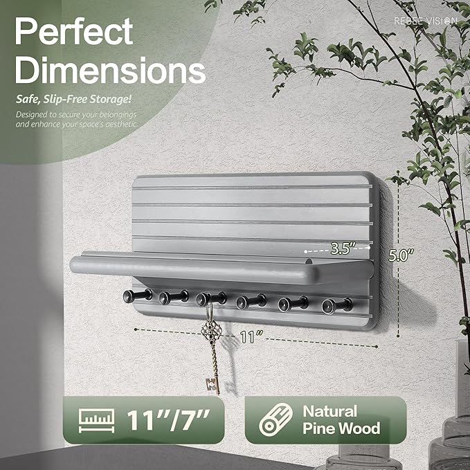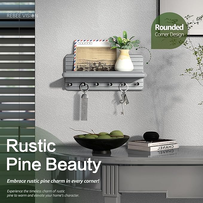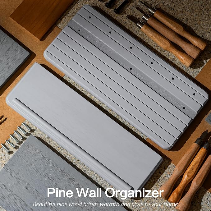 - [STURDY PINE WOOD] Made from premium pine wood, this key hanger wall mount provides long-lasting sturdiness and timeless appeal. The soft gray finish blends seamlessly with both contemporary and rustic interiors, making it a versatile addition to any bedroom decor project. Strong, stylish, and practical.