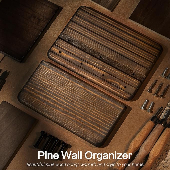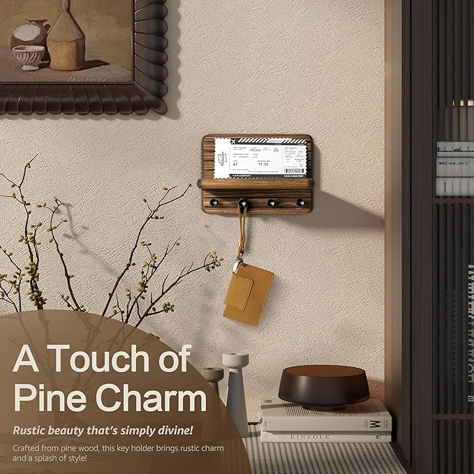 - [PREMIUM WOOD] Crafted from sturdy brown pine wood, this wall key holder adds both strength and charm to your home. The smooth, durable finish adds a stylish vibe that perfectly complements farmhouse decor or any room decor aesthetic. It's a timeless piece that not only stands the test of time but also brings warmth and character to your space.