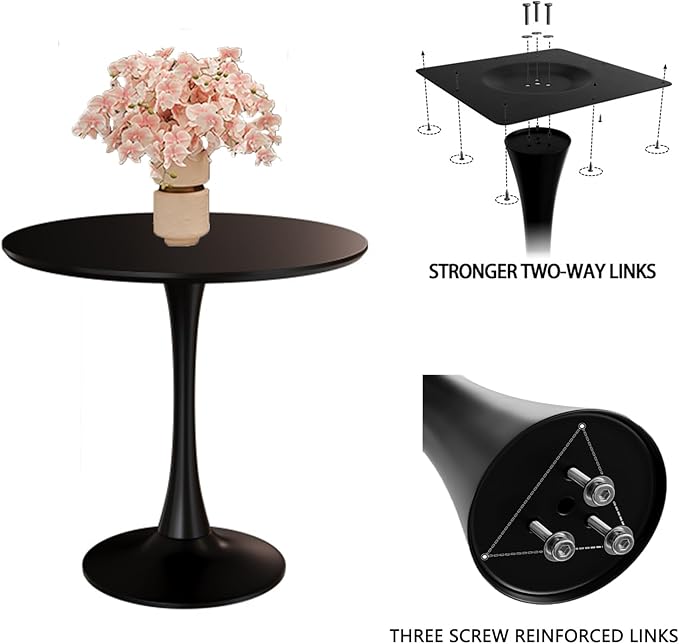 - Easy to Assemble: The required tools and instructions are included in the package. You will easily complete the assembly of the modern black dining table whitin15 minutes.