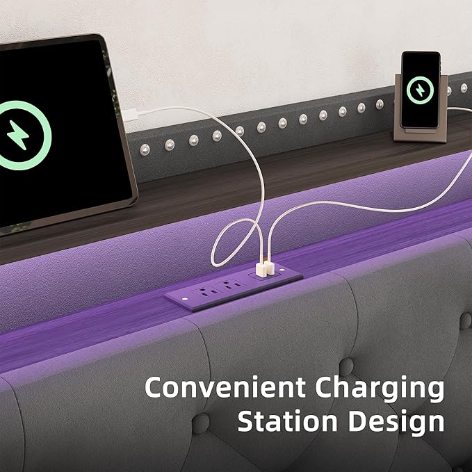 - [Convenient Charging Station] The LED king size bed frame with its built-in outlet and two USB ports can make you easily charge the devices while in bed.