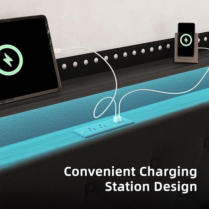 - [Convenient Charging Station] The LED king size bed frame with its built-in outlet and two USB ports can make you easily charge the devices while in bed.