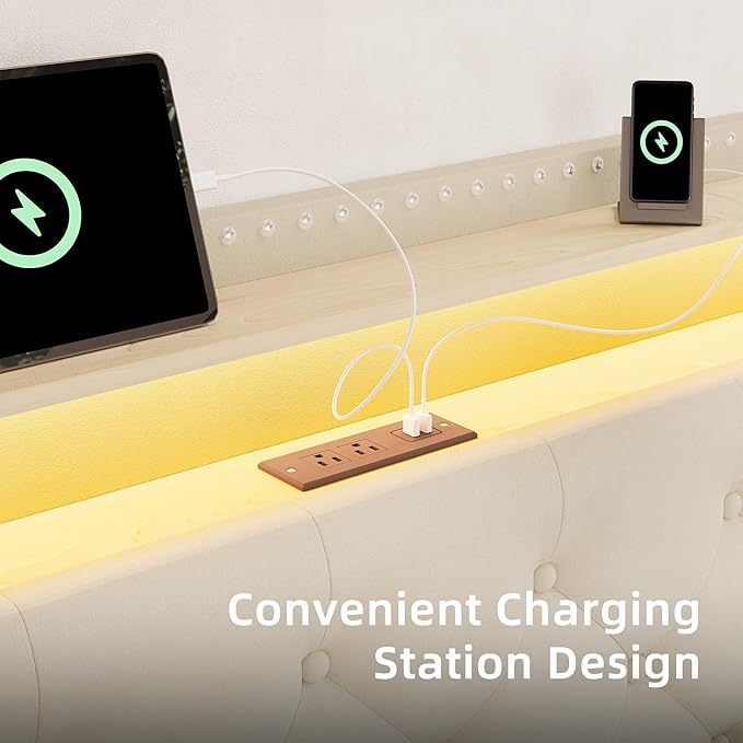 - [Convenient Charging Station] The LED king size bed frame with its built-in outlet and two USB ports can make you easily charge the devices while in bed.