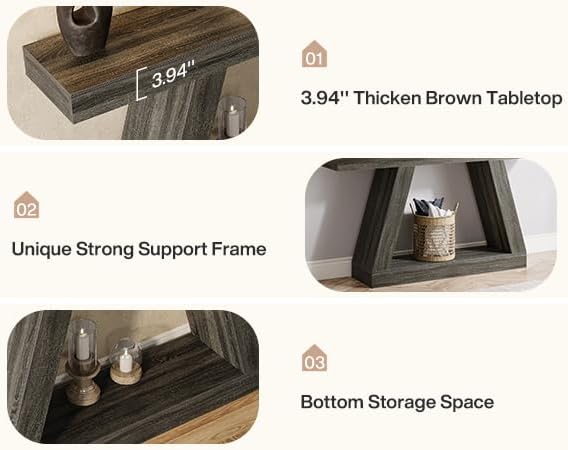 - Versatile Entryway Table: The utility is as adaptable as your imagination. This 55-inch gray console table can serve as a sofa table behind the couch, an entryway table in the foyer, a decorative accent table in the living room, etc.