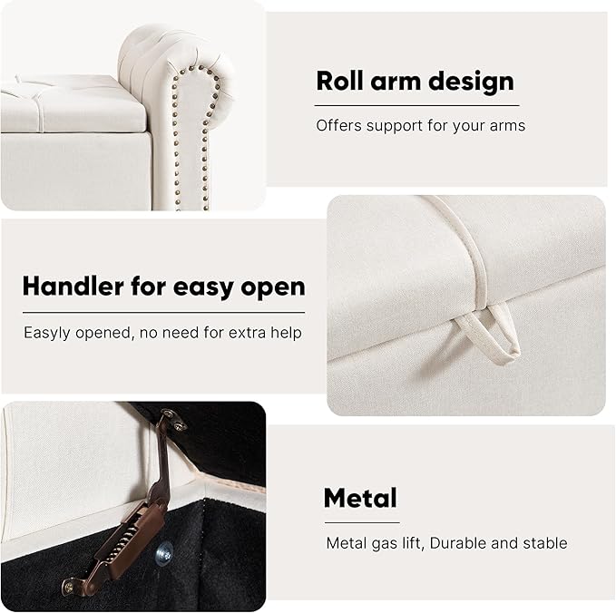 - AMPLE STORAGE SPACE: Under the seat of our ottoman bench there are ample storage space for your family. You can keep some toys and some throws in the storage bench when you don't need them. Maximize your living space with our storage end of bed bench, perfect for keeping essentials neatly while adding both style and function to your home