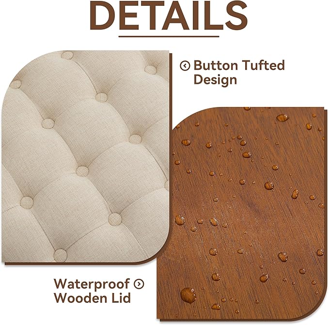 - Premium Material:Circle ottoman is made of high-quality linen fabric, which is soft and breathable. The wooden cover has a natural texture and a smooth and waterproof surface. It can be used as a coffee table, had a fine craftsmanship, simple design, and spacious storage space, combining beauty and practicality.