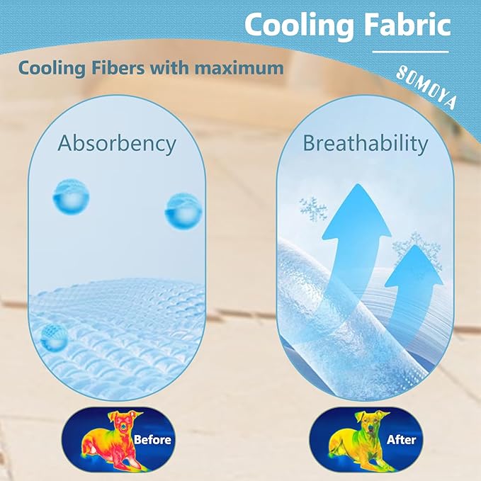 - ●Dog Cooling Mat Advanced Cooling Technology: Cooling mat for cats or dogs Infused with high-performance material, our cooling mat effectively absorbs and dissipates body heat, providing a constant cool surface for your dog to relax on.