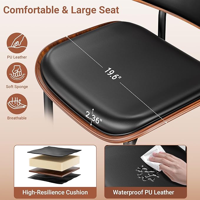 - 【High-quality Material】The back of the dining chairs set of 2 adopt enduring solid wood walnut. The surface of the cushion and backrest is covered with soft PU leather, and the interior is filled with high-density sponge, which is soft and smooth, ensuring the comfort of sitting on the black dining chairs for a long time. With these dining room chairs, the dining room will look modern, elegant and distinctive!
