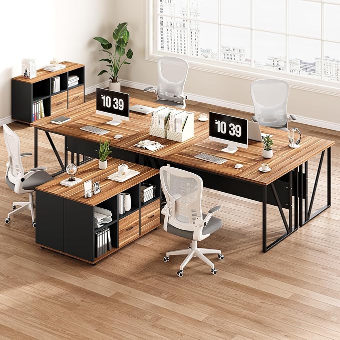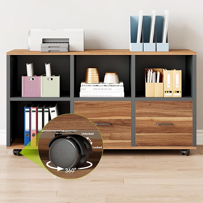 - Versatile Storage Solution: The accompanying 47-inch file cabinet, with its sizeable mobile storage, serves perfectly as an additional work surface or a space for your office devices. It's designed to hold letter-sized files in its dual drawers