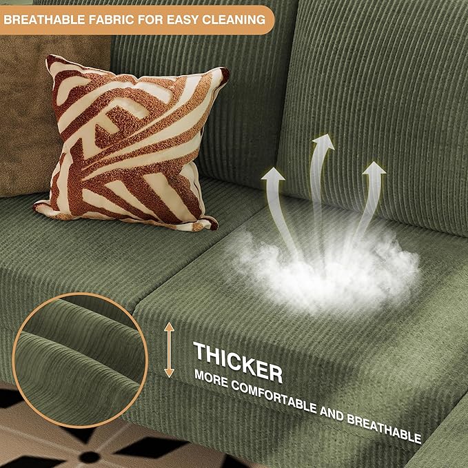 VICTONE Convertible Sectional Sofa Couch, 3 Seat L-Shaped Sofa with Linen Fabric Ottoman Small Couch for Small Apartments, Living Room and Office (Corduroy, Green)
