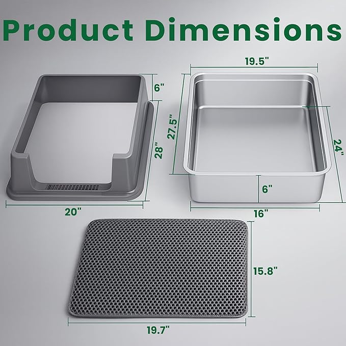 - Spacious XXXL Design for Big Cats & Multi-Cat Homes: With generous dimensions of 28" L x 20" W x 12" H and a 50L capacity, this extra-large stainless steel litter box gives your cats plenty of room to move comfortably. Ideal for larger breeds or multiple cats, it holds more litter—meaning fewer cleanups and up to 30 days of worry-free use when you're away.