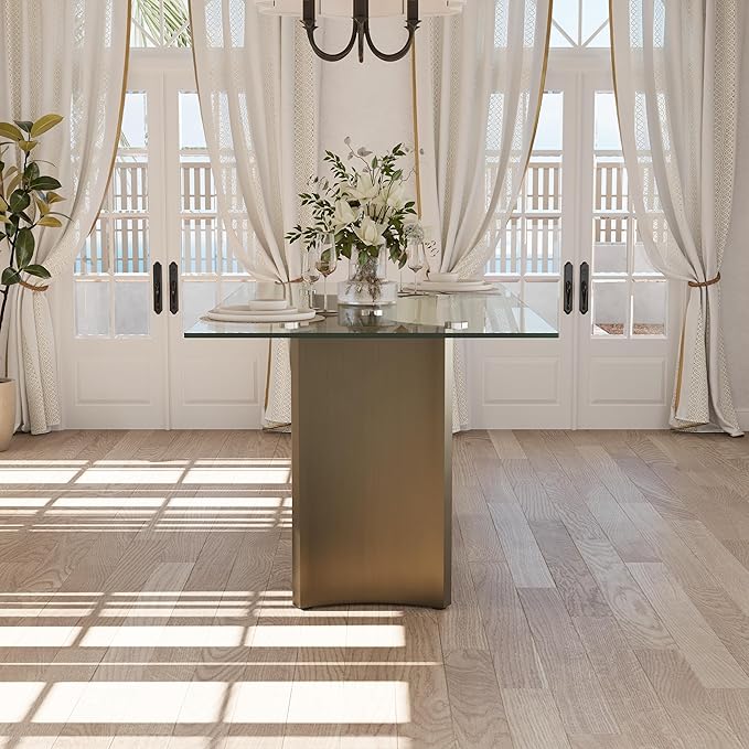 - Easy to Assemble and Effortless to Clean: Our glass dining table is designed for hassle-free assembly, allowing you to set it up in minutes without any complicated tools. The sleek, smooth surface makes cleaning a breeze—just a quick wipe with a damp cloth, and it’s spotless. Perfect for busy households, it combines modern elegance with practical convenience!