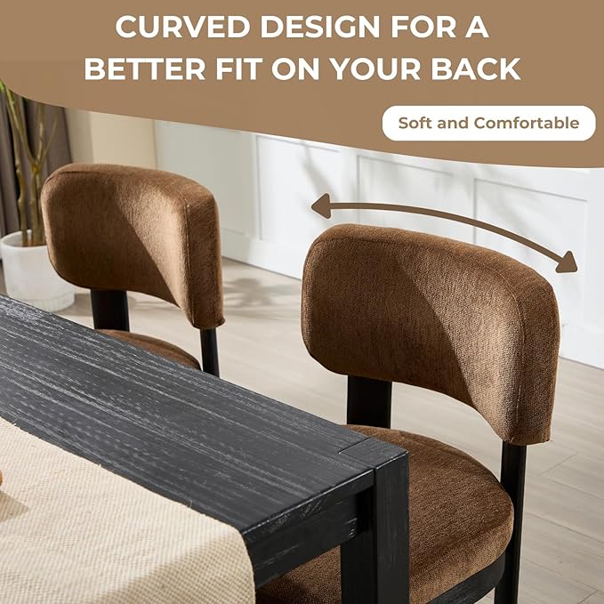 - 【Modern Upholstered Dining Room Chairs】Modern upholstered dining chairs add a stylish and comfortable element to any dining room.The brown chenille seat cushions paired with black wooden legs,the backrest is also a comfortable cushion.The cushioning and support these chairs provide ensures you and your family are comfortable while dining or gathering together