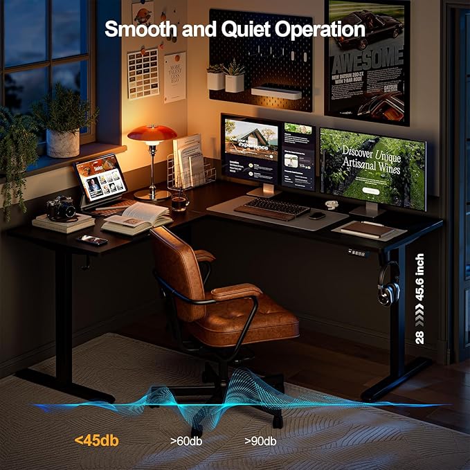 - 【2-Preset Electric Height Adjustment & Smart Controls】Elevate productivity with smooth, silent height adjustments (28"–45.6"/70–116cm range). The intuitive 4-button controller includes 2 memory presets for one-touch switching between sitting and standing positions. Ideal for posture variety, reducing fatigue, and enhancing focus during long work sessions.