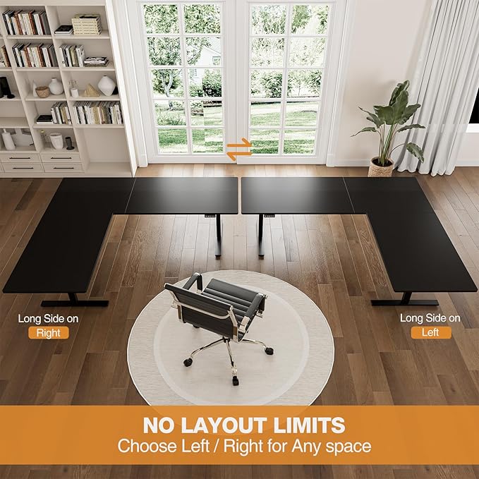- 【Dual-Sided L-Shaped Design & Corner Flexibility】Optimized for corner workspaces, the 160x140cm (63"x55") L-shaped desk features a reversible layout (left or right orientation), maximizing space efficiency and adaptability. Perfect for multi-device setups (3 PCs + laptop + accessories), its expansive surface keeps everything within arm’s reach, streamlining workflows for home offices, gaming, or remote work.