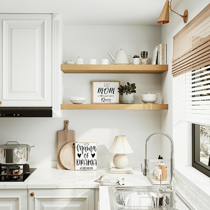 - Versatile & Functional - Our Decorative shelf for wall Adds character to any modern, traditional, rustic, or farmhouse decor home & kitchen styles.These shelves for wall decor above a small desk in your guest room, desks, fireplaces, over toilet storage shelf,living room wall decor, corner bookshelf, bathroom decor, office wall decor,or vanities and so on. If you are seeking easy-to-install, stylish floating shelves to add a contemporary touch to your home, these shelves are an excellent choice.