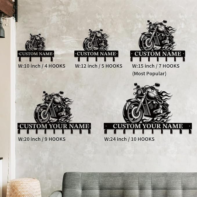 - Personalized Motorcycle Wall Hooks: Add a unique touch to any room with these custom name motorcycle wall hooks, perfect for organizing keys, coats, and accessories while showcasing your love for motorcycles.