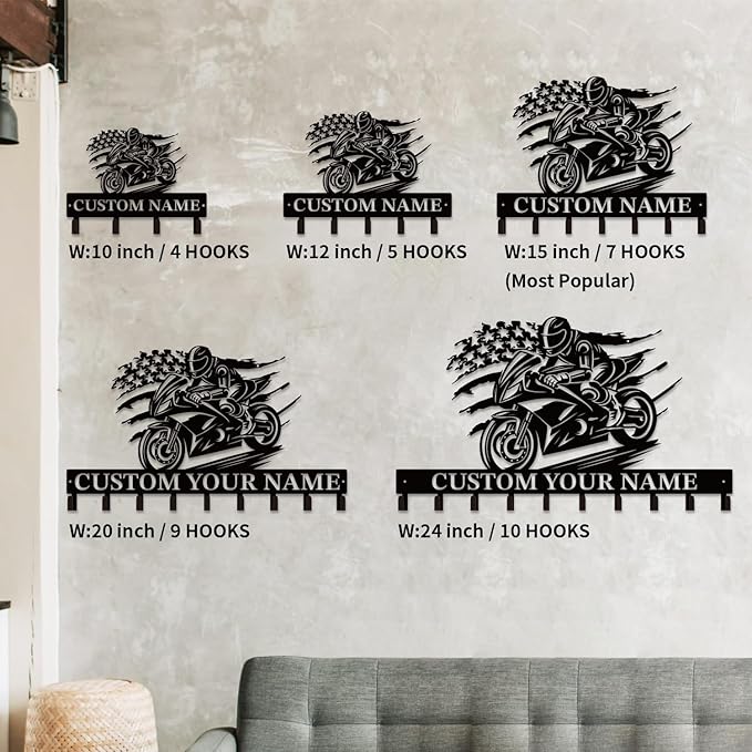 - Personalized Motorcycle Wall Hooks: Add a unique touch to any room with these custom name motorcycle wall hooks, perfect for organizing keys, coats, and accessories while showcasing your love for motorcycles.