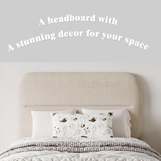 HOMBCK Twin Bed Frames with Headboard, Twin Size Boucle Upholstered Bed Frame for Kids, Soft Rounded Corners, Wooden Slats Support, No Box Spring Required, Easy Assembly, Cream