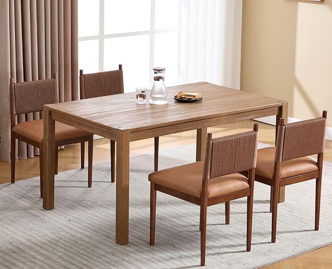 - [Unique Woven Backrest Design]-Crafted with an intricate rope-woven backrest, this chair adds a touch of artisanal charm and modern elegance to your dining space.