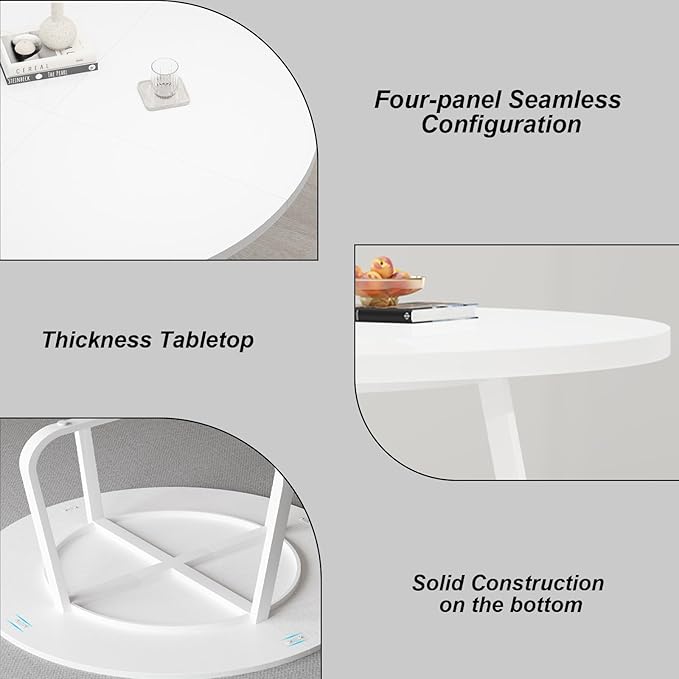 - 【UNIQUE SPACE SAVING DESIGN】: This 51.2 inch modern tulip round dining table with white wood grain table top on heavy duty metal legs will bring simplicity and elegance into your life, it can be used as a breakfast table, coffee table, living room table, leisure coffee table and outdoor dining table,the tabletop consists of four scalloped pieces that are easy to carry around for your convenience.