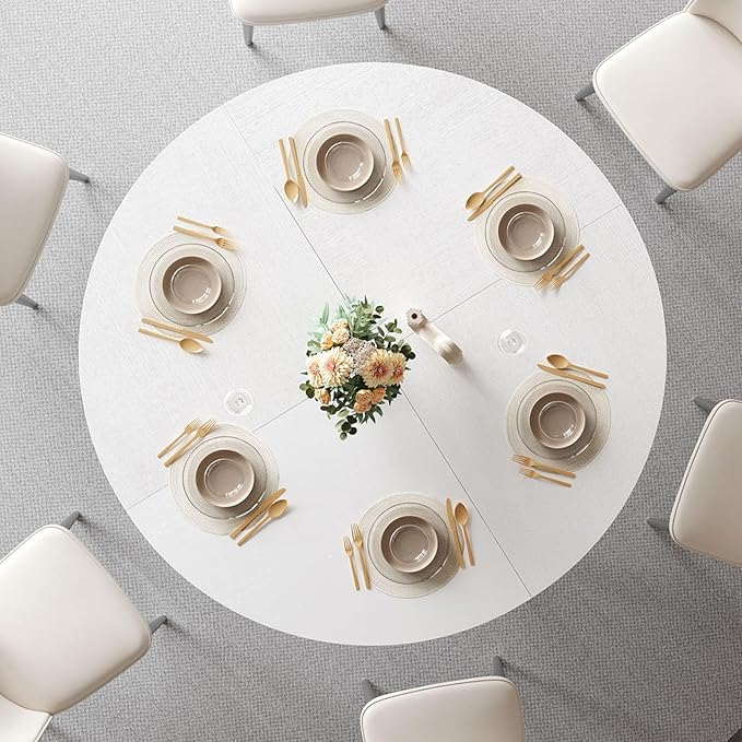 - 【VERSATILE MODERN DECOR】:White round kitchen dining table complements most modern décor with 4-6 chairs, the round dinner table is perfect for kitchens, small space dining rooms, decks, patios, coffee, offices and more. With this stylish modern white oak round table, it easily seats 4-6 people and is perfect for intimate gatherings.