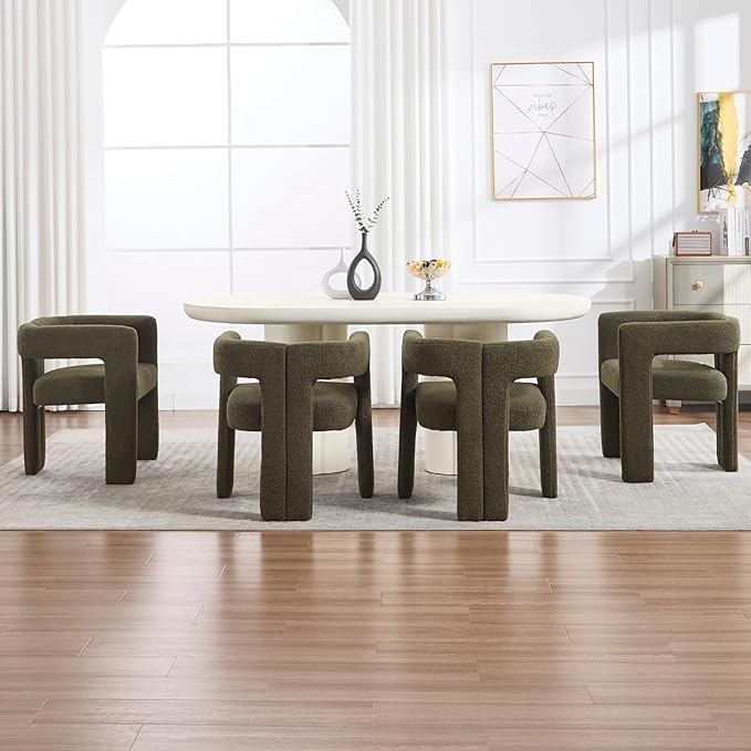 Modern Dining Chairs Set of 4, Upholstered Side Chairs Sherpa Fabric Guest Chairs with Barrel Backrest Armchair for Dining Room Living Room, Green